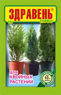 «Здравень турбо для хвойных растений» способствует формированию мощной корневой системы.